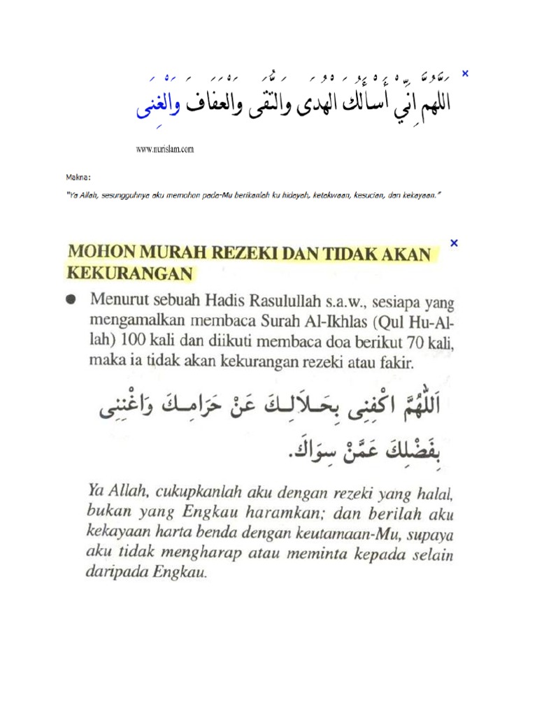 Music doa minta murah rezeki 100% free! Karena pada hakikatnya kita adalah makhluk yang bergantung kepada allah sang maha pencipta. Cukuplah solat menjadi ukuran keakraban hubungan kita dengan allah. Doa ini amat bermanfaat sekali dalam kehidupan. Sekiranya anda ingin baca doa di atas untuk diri anda ataupun doa kepada perempuan, silalah gantikan dhomir yang bersesuaian untuk orang yang anda ingin doa tu.