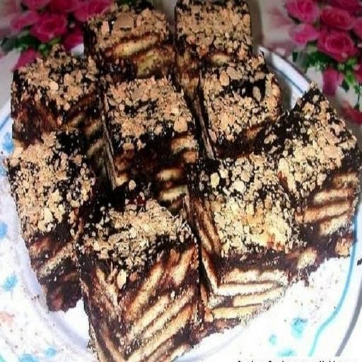 This cake is made by mixing broken marie biscuits combined with a chocolate sauce or runny custard made with.